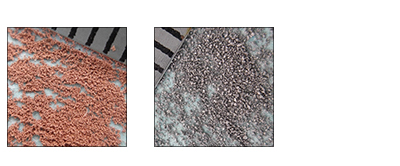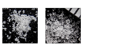 比如上圖左是20目的結(jié)晶鹽顆粒,在混合工藝中容易滯留于容器底部,上圖右是2000目的顏料粉末,在混合時(shí)容易漂浮于物料上方,不易混合。