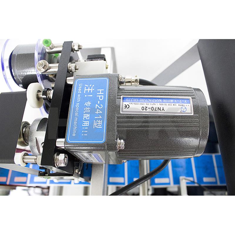 產品優點: 1、適用范圍廣,可滿足20-120直徑范圍的圓柱體貼標 2、貼標精度高,標簽頭尾相接地方偏差≤±0.5mm 3、采用巧妙的擠壓式裝置上料,只需放工件,自動完成貼標 。 4、采用卡位式調整,不同工件貼標切換簡單 。 5、采用同步帶牽引,機械穩定性大大提高。 6、桌面式設計,結構精簡,外形小巧,功能強大。 7、采用不銹鋼和鋁合金材質。美觀大方。 8、采用軍工的電眼,物體、標簽檢測靈活方便調試。