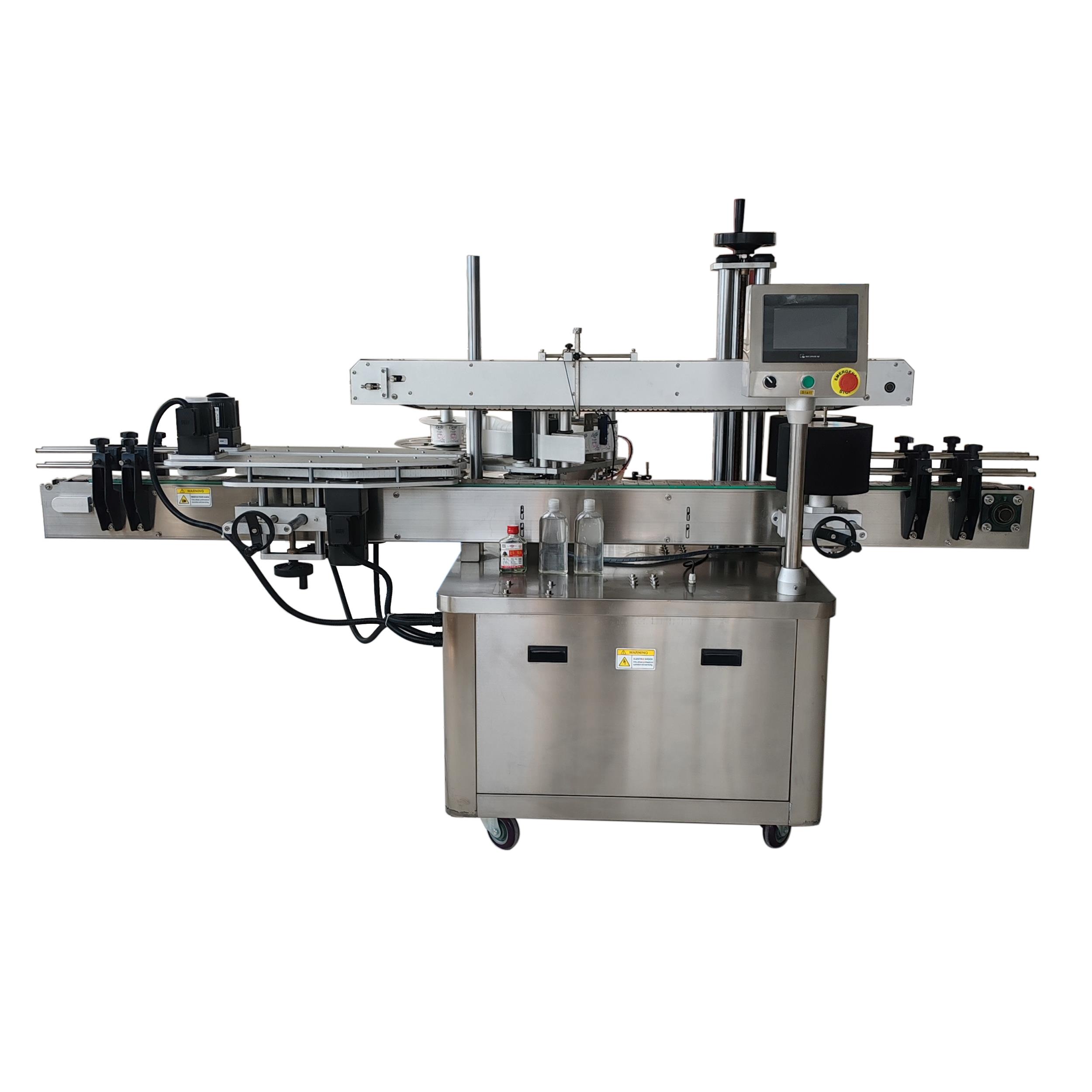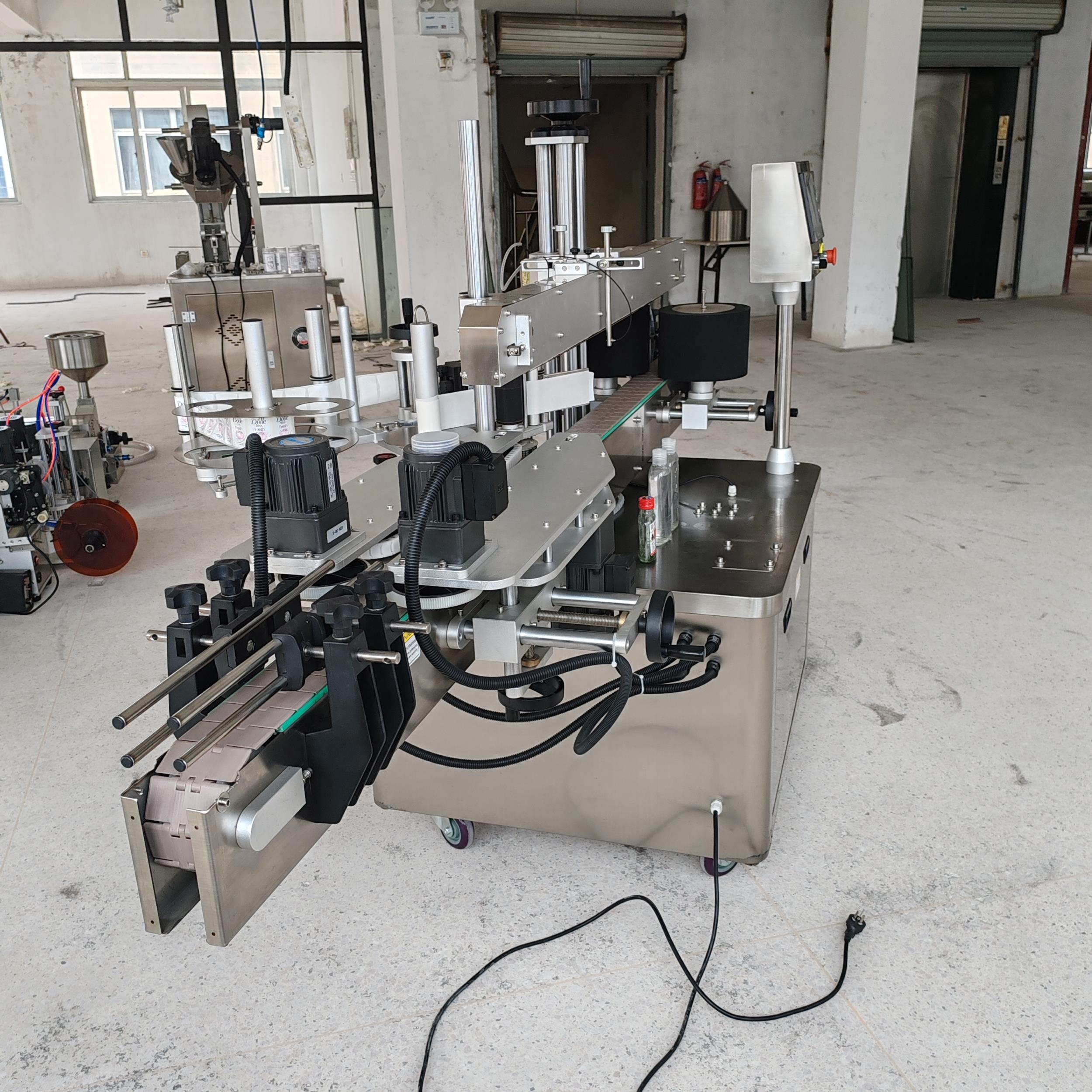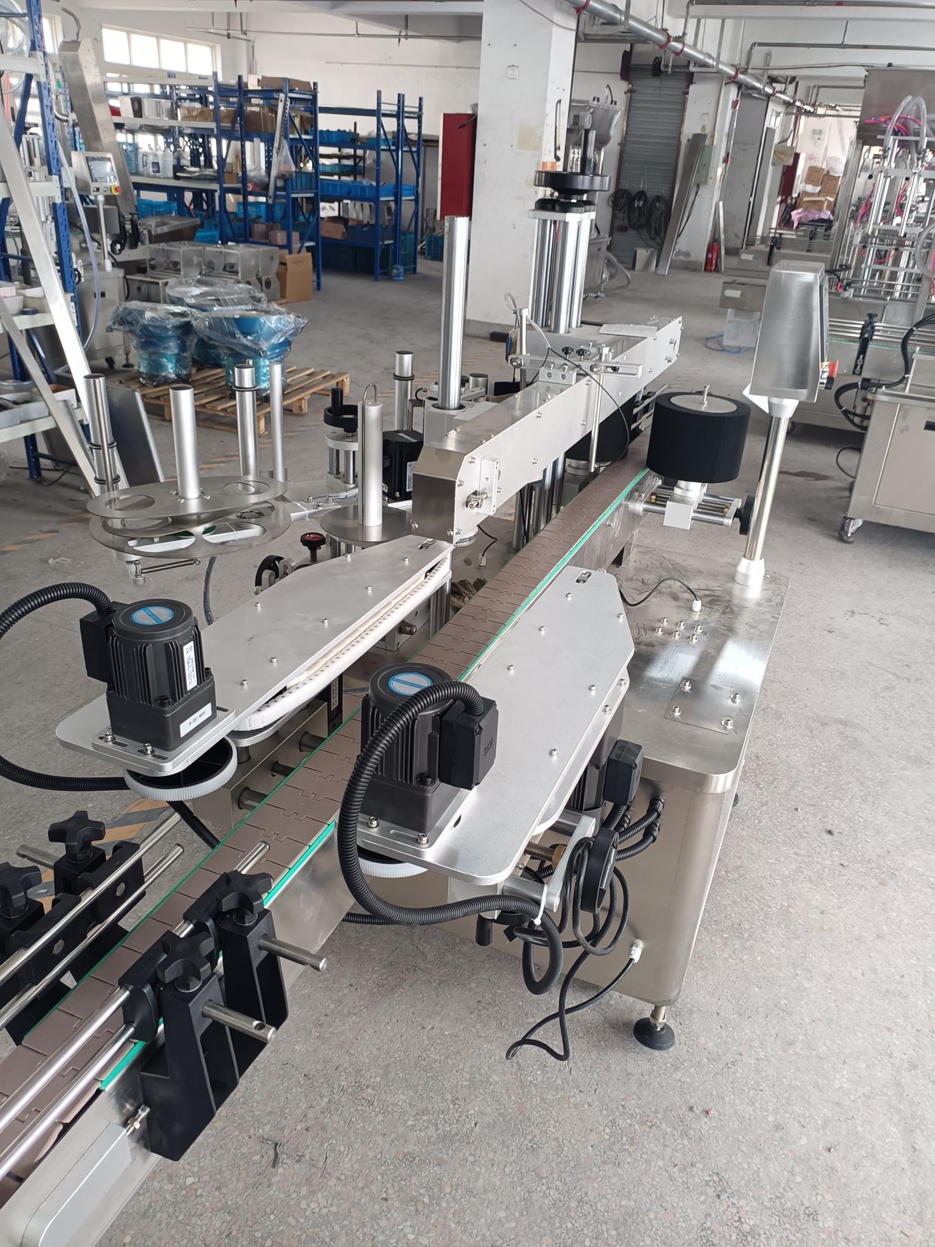全自動平面雙面不干膠貼標機能自動把標簽貼到瓶子的指定位置,適合方瓶貼單面,,如洗潔精瓶 洗衣液瓶,酒瓶,本機可以搭配色帶打碼機或噴碼機,同時完成打印批號,日期,產量計數,在遇到缺瓶時,控制系統保證不送標,有效的防止標簽的浪費,并可根據各廠的生產特點對貼標速度作無級調整,從而保證該機能單獨使用或與其他機器聯線使用。