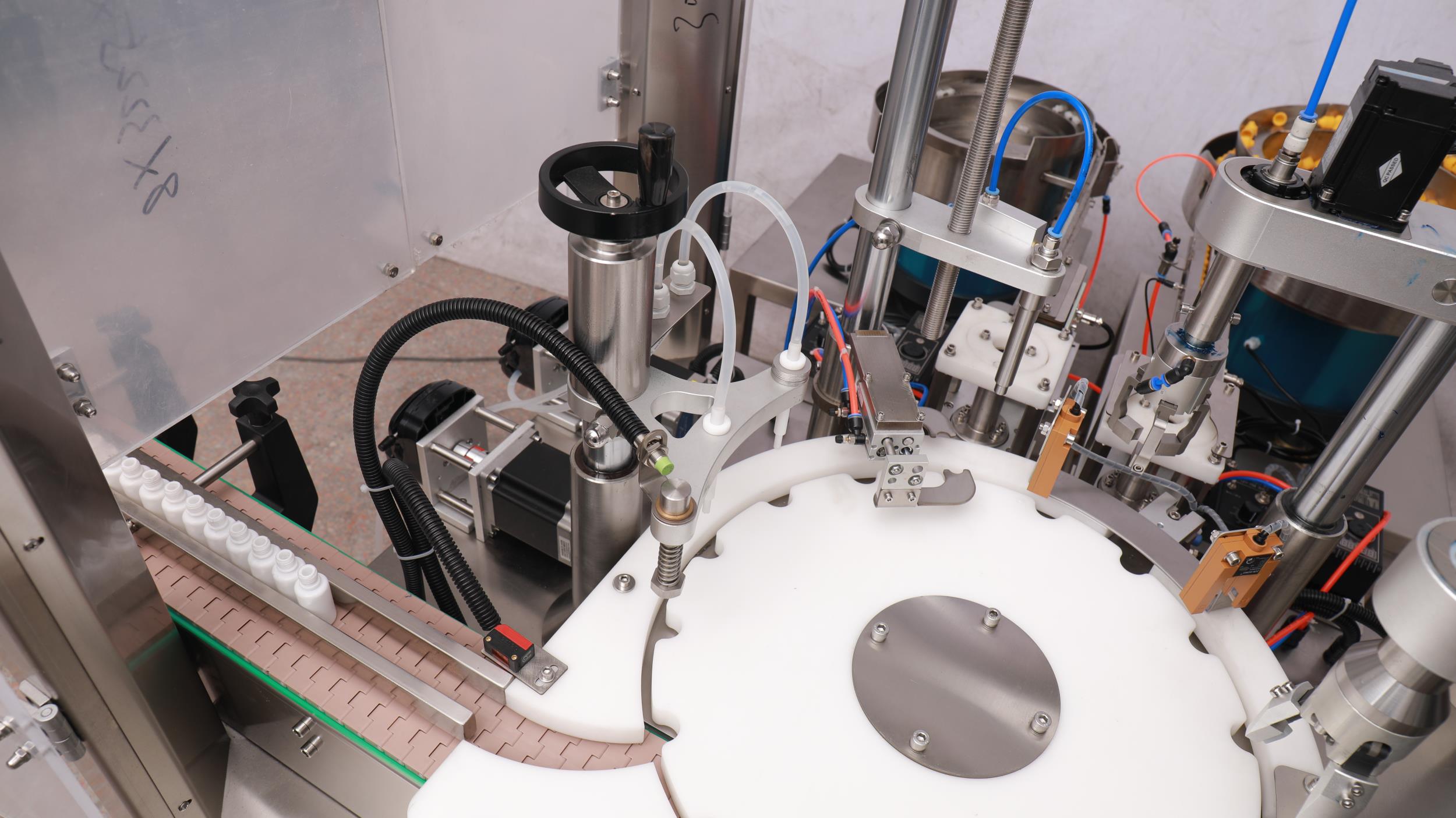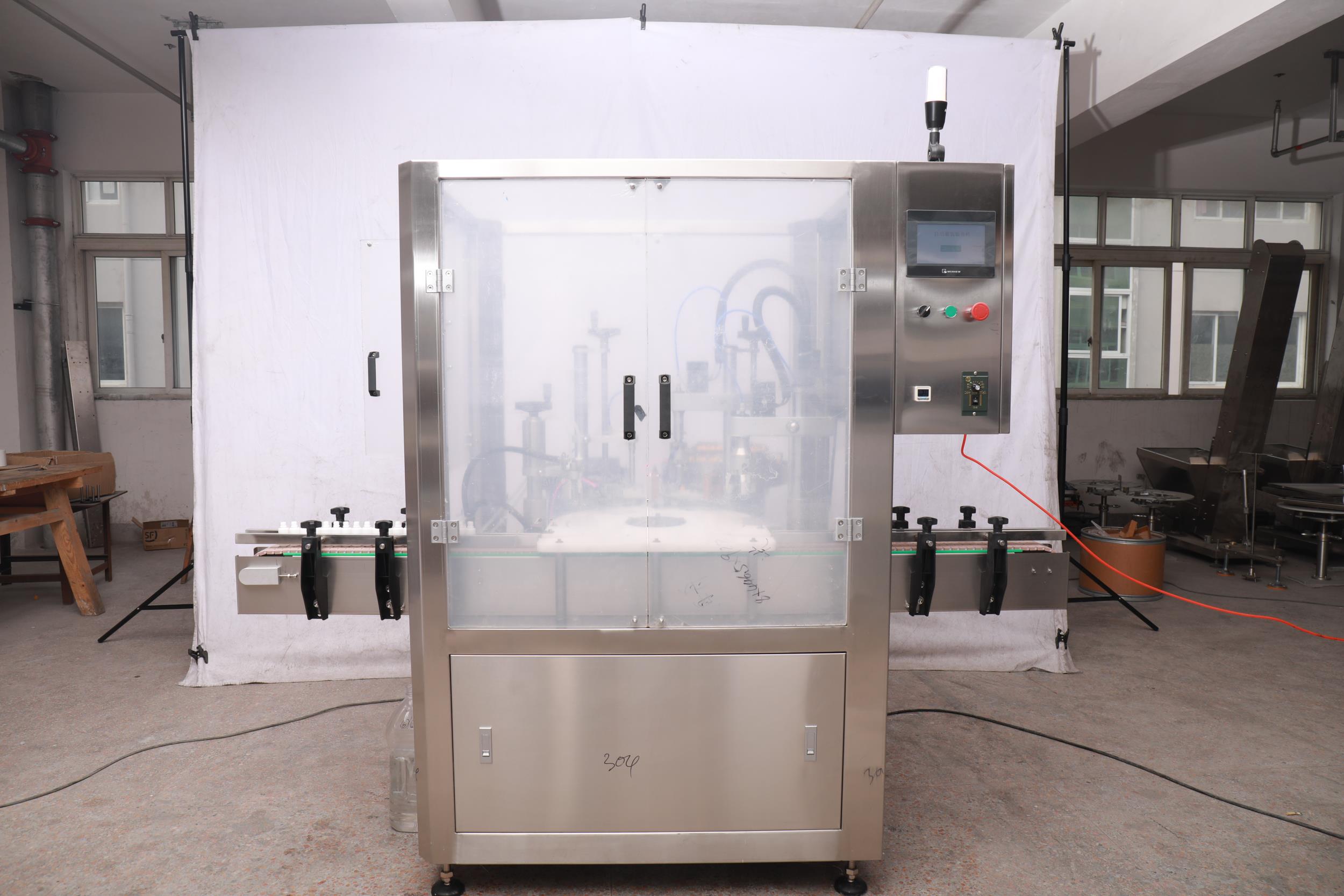 全自動(dòng)灌裝旋蓋一體機(jī)(蠕動(dòng)泵灌裝+擺臂式上蓋,內(nèi)塞加外蓋)
