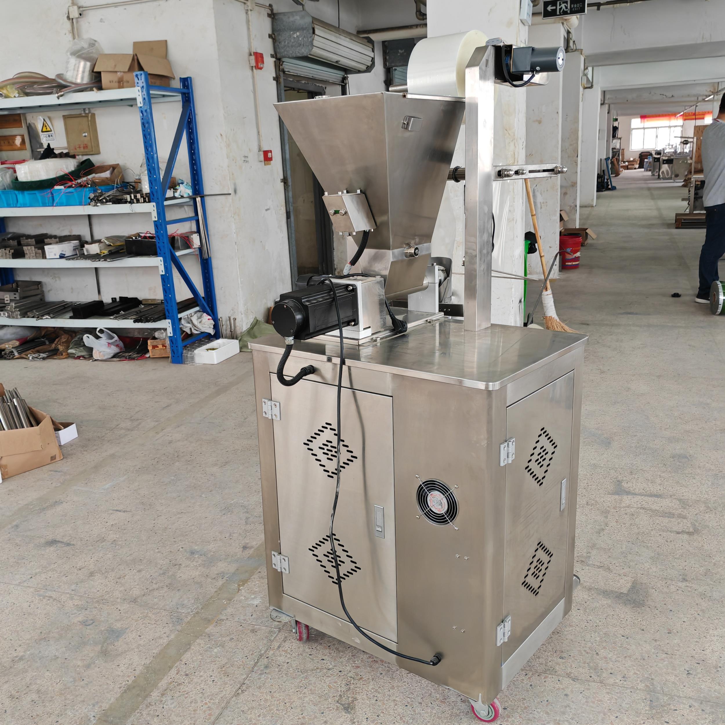 本機采用螺桿轉速下料,平推款,使物料順利通過管道注入包裝袋內,從而解決一般自動包裝機工作時流動性不強的物料滯留的不良效果。