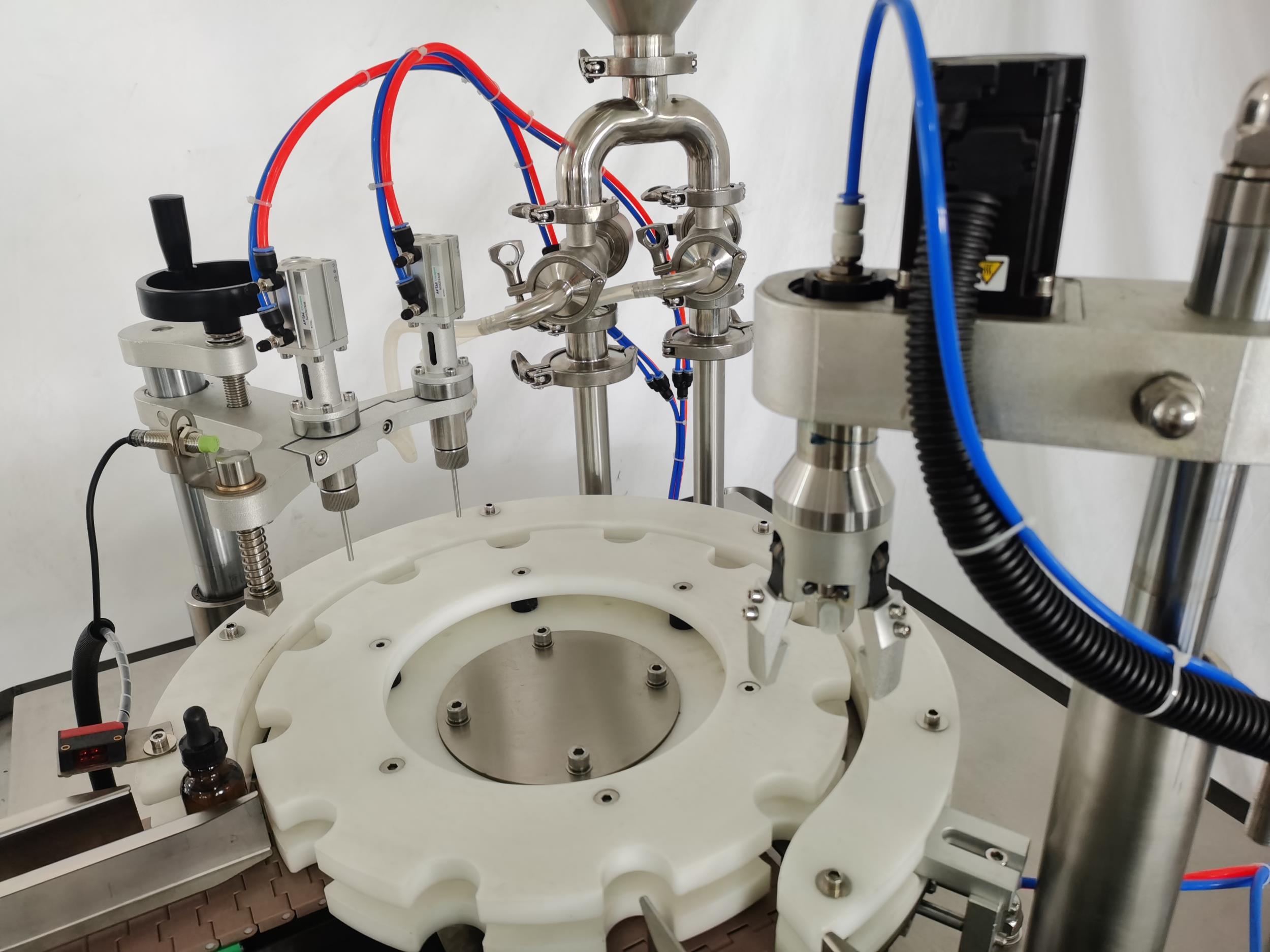 全自動灌裝旋蓋一體機(雙頭灌裝+三爪式伺服旋蓋)