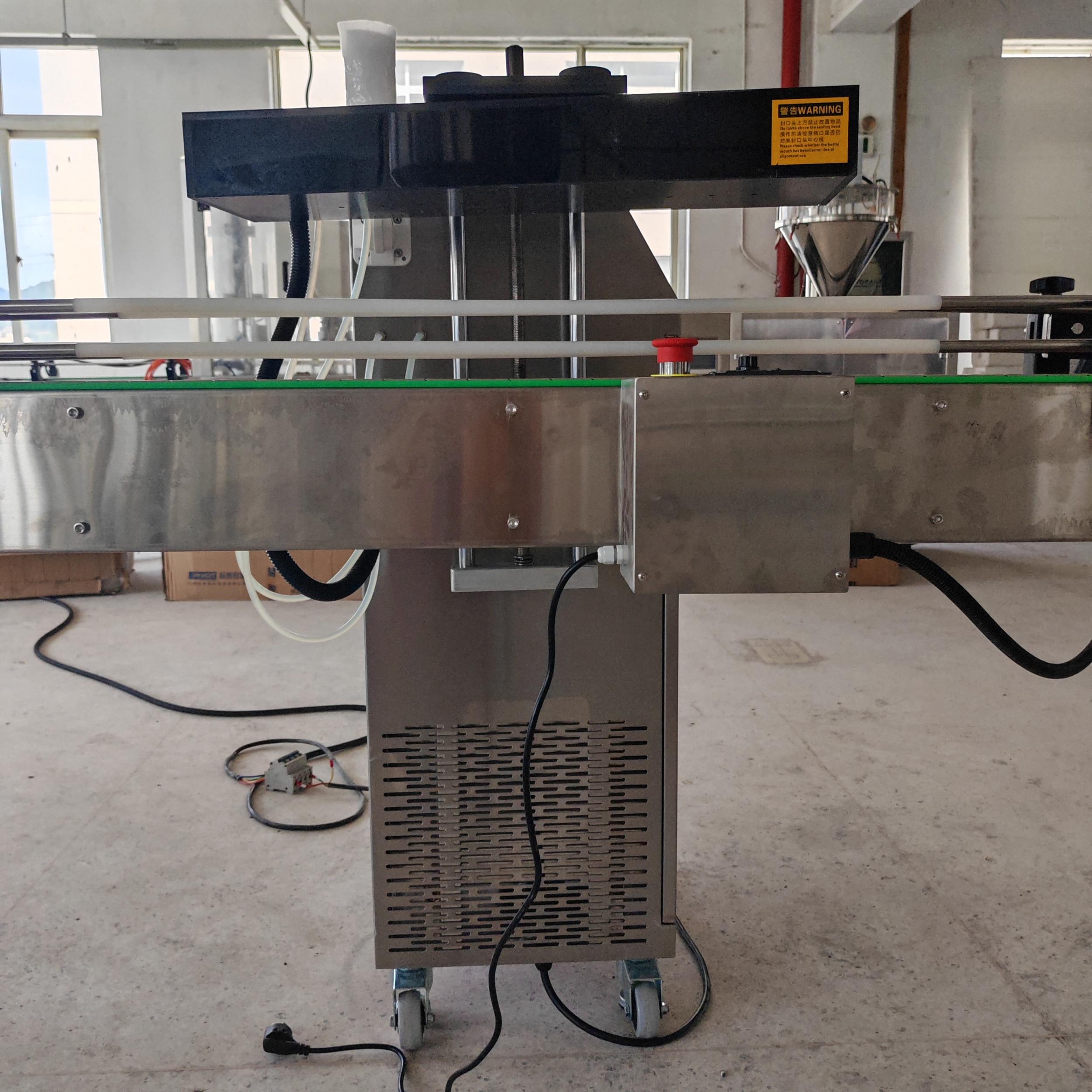 本機采用電磁感應加熱原理,通過非接觸感應加熱,使鋁箔瞬間高溫熔化封口膜的粘合層,冷卻后封口膜與瓶口粘合,完成封口
